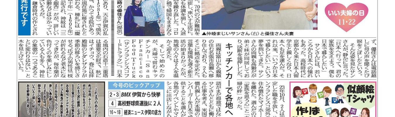 その他、求人特集や名張市の一般介護予防特集、『忍者のリアル 追求体験施設』『「超硬合金」一貫生産の強み』『やなせ宿 来年4月から休館』『世界企業のキャリアより家族を 米国から名張へ 夫婦の決断 いい夫婦の日11・22』の記事など地域の情報盛りだくさんでお届けしています。