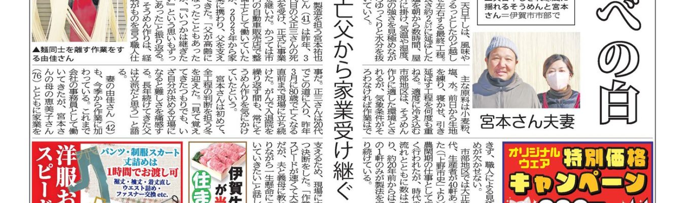 その他、求人特集や『小学生向け 仕事体験イベント 将来の「夢」名張で見つけて 名張YEG 25日・アスピア』『「社長」「上司」かたる詐欺メールに要注意』『「桃鉄」に伊賀・名張4駅登場 総監督・さくまあきらさんからメッセージ』の記事など地域の情報が満載です。